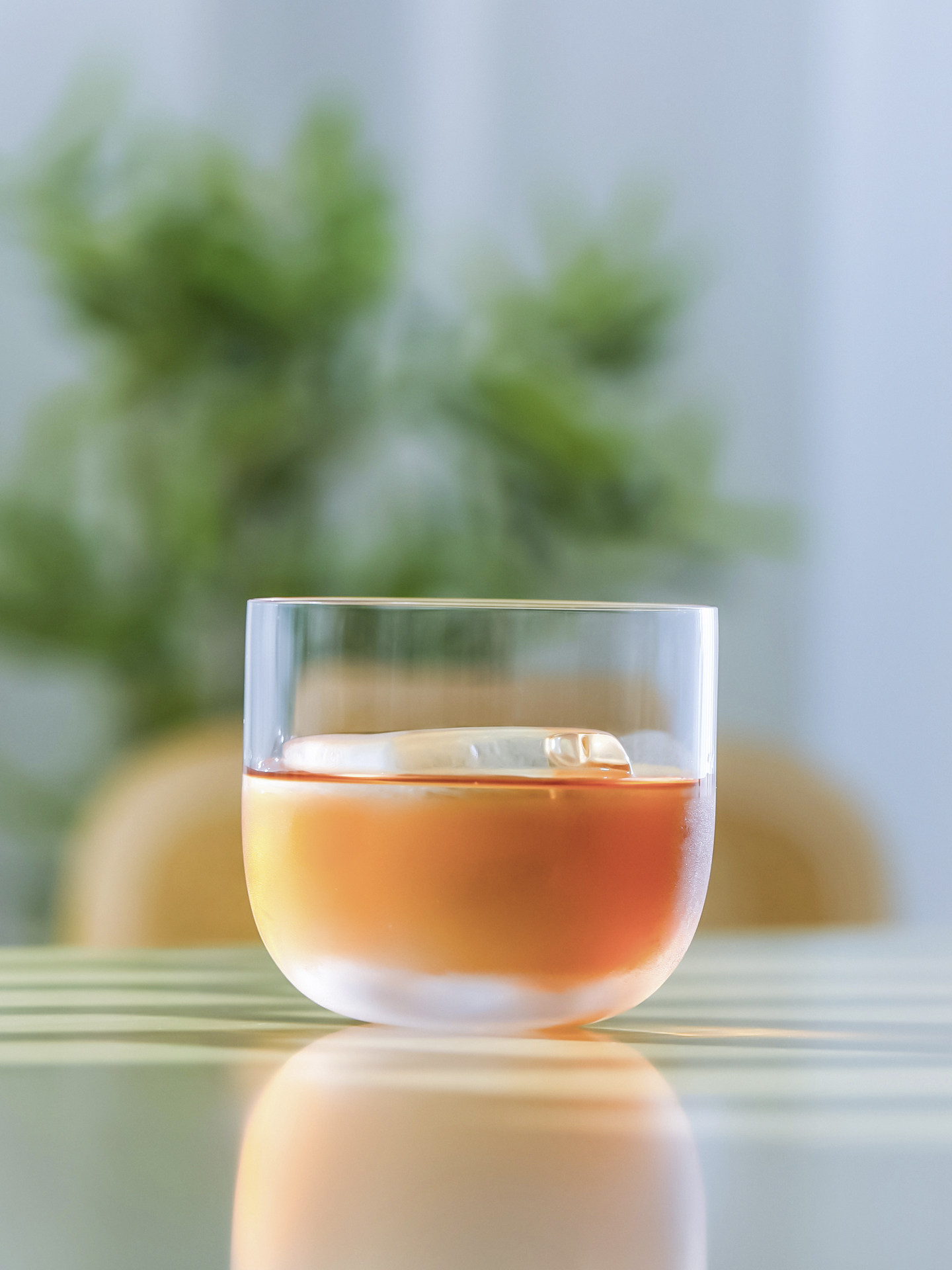 The wall of the glass itself is thin (~2-3mm vs 5-7mm for typical heavy tumblers). Hand-blown to keep weight low (180g vs 380g for a heavy rocks glass). Lighter in hand, more refined visually the glass disappears into the cocktail rather than dominating it.